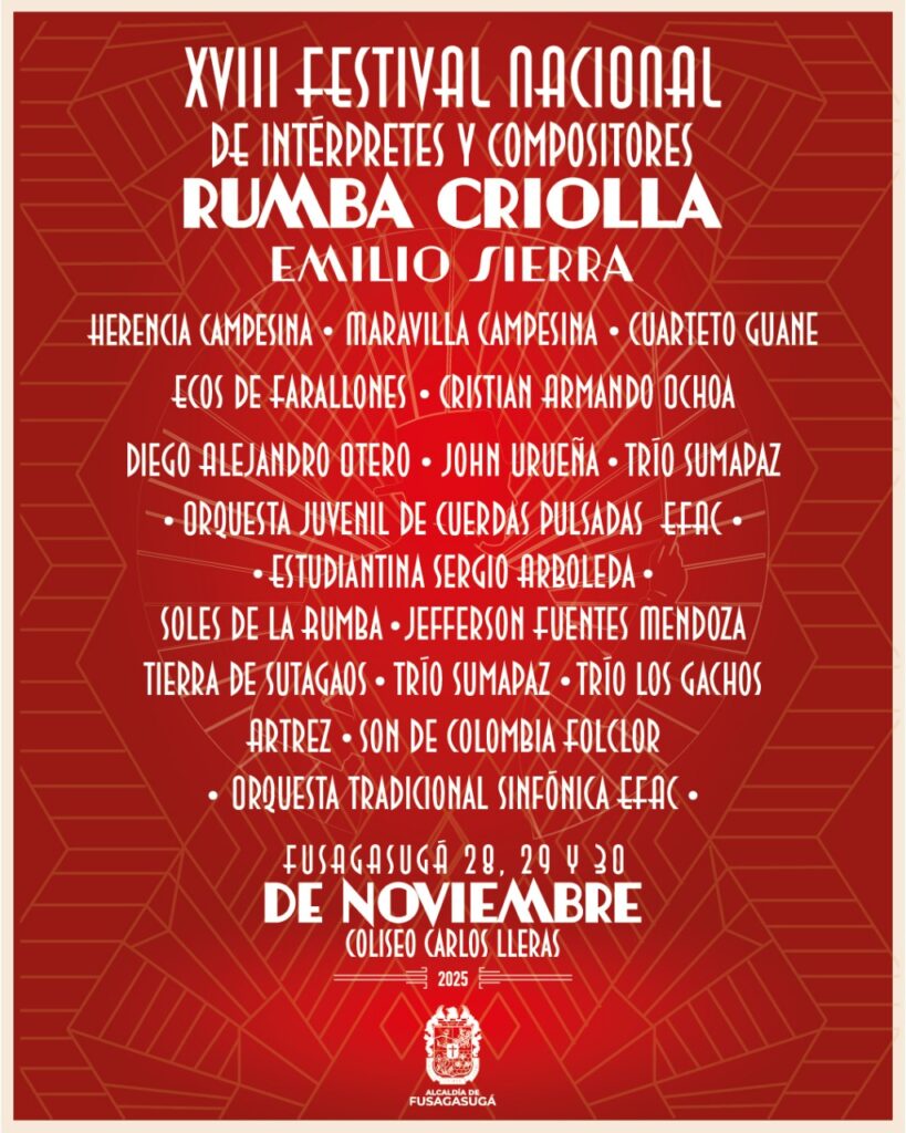El festival se llevará a cabo los días 28, 29 y 30 de noviembre de 2025 en el Coliseo Carlos Lleras, donde se reunirán intérpretes, compositores, investigadores y amantes de la rumba criolla para celebrar este género musical que hace parte de nuestra identidad y patrimonio cultural.