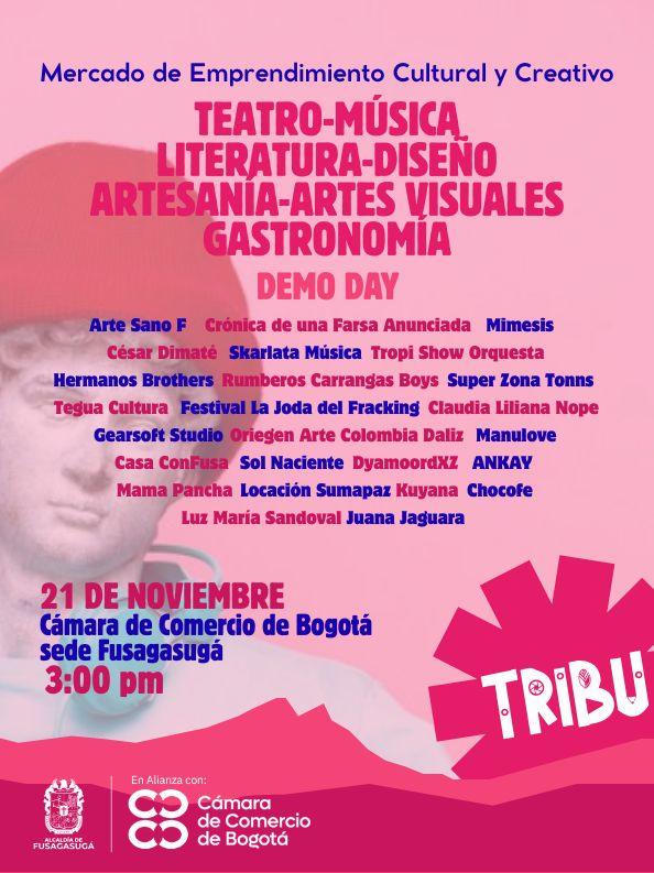 La Alcaldía de Fusagasugá, la Secretaría de Cultura y la Secretaría de Desarrollo Económico, en alianza con La Cámara de Comercio de Bogotá tiene el agrado de invitarle a participar en el evento TRIBU 2025, que se llevará a cabo los días 21 de noviembre en la